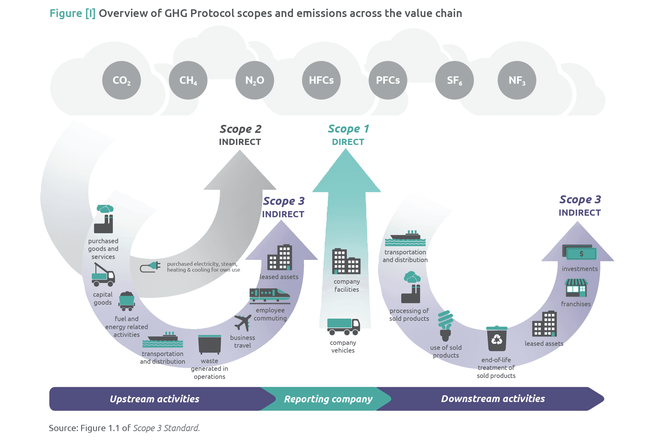 Scope 1, 2 och 3 kommer från Greenhouse Gas Protocol (GHGP), som är världens mest använda företagsstandard för att mäta och rapportera växthusgasutsläpp. Protokollet utvecklades i slutet av 1990-talet genom ett samarbete mellan World Resources Institute (WRI) och World Business Council for Sustainable Development (WBCSD), med syftet att skapa ett gemensamt och transparent ramverk för hur organisationer ska kunna mäta sin klimatpåverkan.